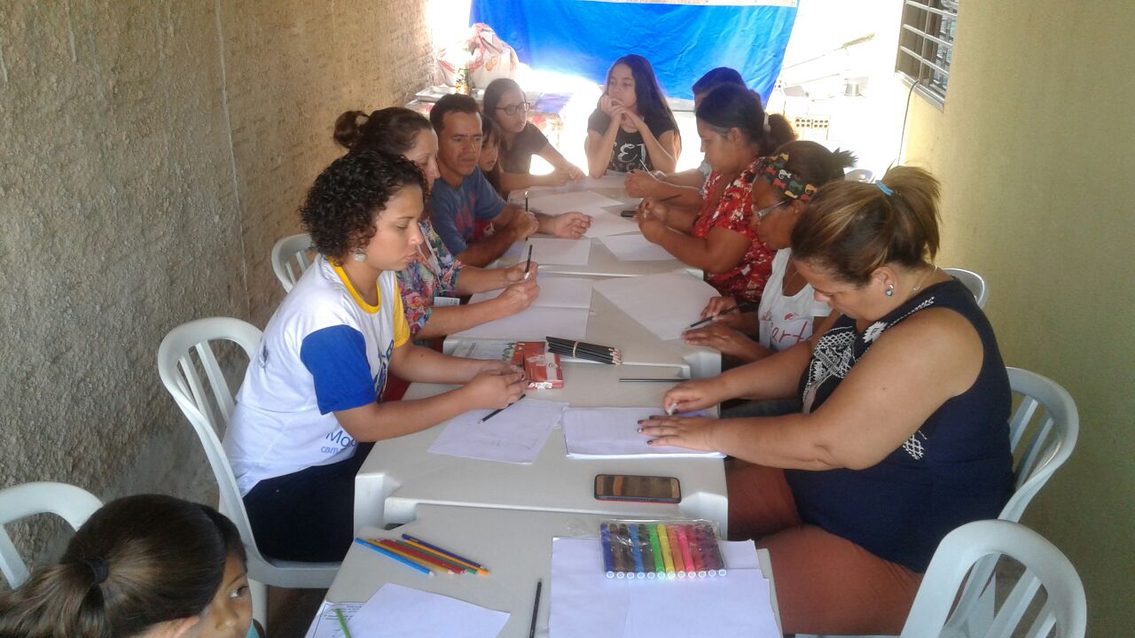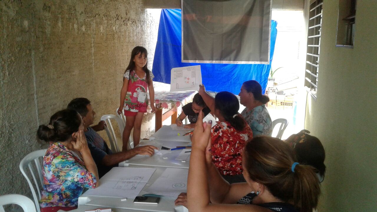 Na parte da tarde, houve uma dinâmica em que os moradores foram convidados a desenhar de que forma desejavam a horta comunitária. Em seguida, foi realizada individualmente a apresentação de ideias do que planejaram e imaginaram para o plantio na horta urbana.